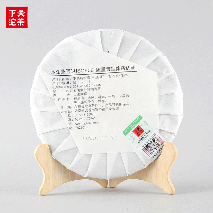 357克紙袋提盒裝下關特級青餅 普洱茶(生茶)2023